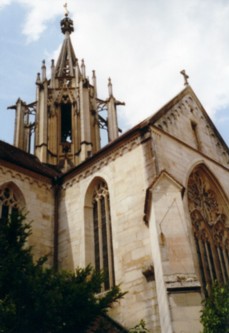 Tübingen-BebenhausenDas (ehemalige) Kloster Bebenhausen liegt nördlich von Tübingen und wurde durch Pfalzgraf Rudolf I. von Tübingen (1182-1219) 1183 zunächst als Prämonstratenserkloster gestiftet. Vor 1189/90 siedelten sich Zisterziensermönche aus Schönau (bei Heidelberg) dort an. Es entstand in der Folge eines der reichsten Zisterzienserklöster Südwestdeutschlands, eine umfangreiche Grundherrschaft, die "Autarkie" einer Grangienwirtschaft versorgte bis zu 80 Mönche und 130 Konversen (Laienbrüder). Bebenhausen fand sich eingebunden in die pfalzgräflich-tübingische Landesherrschaft, die 1342 an die Grafen von Württemberg verkauft bzw. verpfändet wurde. Im Verlauf der 2. Hälfte des 15. Jahrhunderts verstärkte sich die württembergische Landsässigkeit der Zisterze bis hin zur Landstandschaft. Die Reformation in Württemberg führte zur Auflösung der katholischen Mönchsgemeinschaft (1534). Michael Buhlmann, Das Kloster Bebenhausen im Mittelalter, St. Georgen 2005 [157 kB] Foto: Michael Buhlmann (Klosterkirche mit Vierungsturm) |
