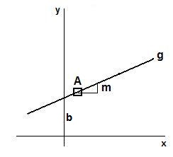 Abbildung: Punkt A; Geradensteigung m; y-Achsenabschnitt b; Punktsteigungsform: (y-y1)/(x-x1) = m;
