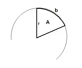 Abbildung:r = Radius, φ = Kreisausschnittswinkel; b = πrφ/180°, A = πr2φ/360°.