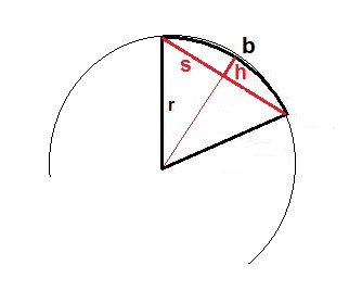 Eingabe von Radius, Winkel, Bogenlänge, Sehne, Höhe und/oder Fläche der Kreisabschnittsfläche (Dezimalzahlen mit Punkt statt Komma):