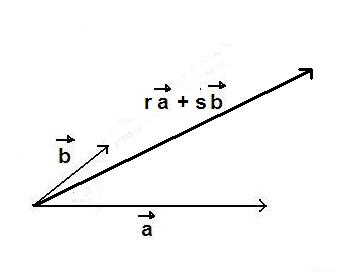 Abbildung:Linearkombination ra-> + sb-> von Vektoren als Summe von skalaren Vielfachen der Vektoren a-> und b->.
