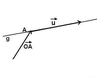 Abbildung:Stützvektor a-> = OA->, Richtungsvektor u-> und Gerade g: x-> = OA-> + t*u-> = a-> + t*u->.
