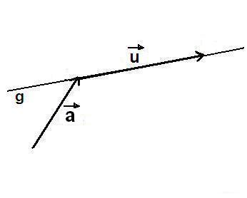 Abbildung:Stützvektor a->, Richtungsvektor u-> und Gerade g: x-> = a-> + t*u->.