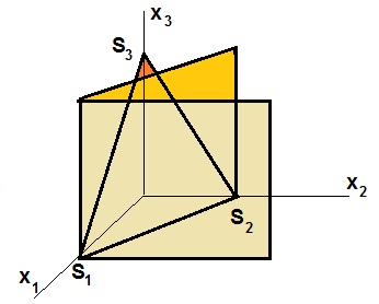 Spurpunkt S3 -> E: cx3 = d (Koordinatenform, parallel zur x1-x2-Ebene);