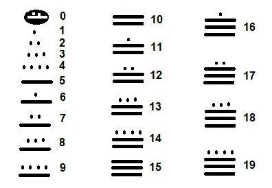 Eingabe von Zahl oder Mayazahl sowie der Umwandlungsrichtung (Zahl als Folge von Ziffern 0,... 9; bis zu 6-stellige Mayazahl als Folge von Ziffern 0,... 17 bzw. 18, 19, getrennt von Punkten; keine Vorzeichen, keine Kommas): | ![]() |