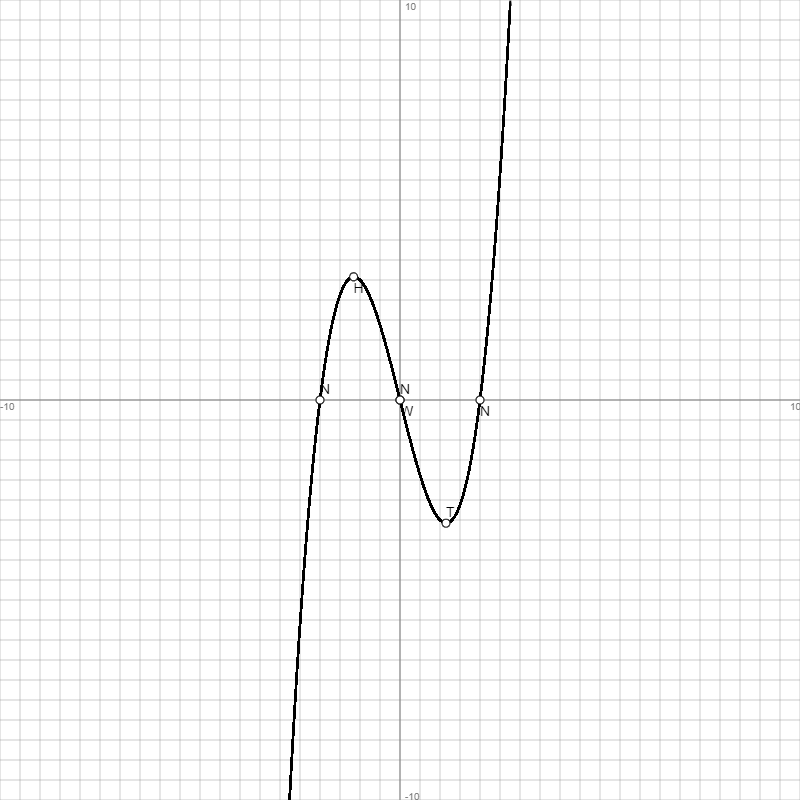 0 | 0 | -4 | 0 | 6 | Nullstelle N(0|0) = Schnittpunkt Sy(0|0) = Wendepunkt W(0|0) |