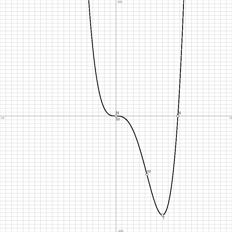 0 | 0 | 0 | 0 | -95.96 | Nullstelle N(0|0) = Schnittpunkt Sy(0|0) = Wendepunkt W(0|0) = Sattelpunkt WS(0|0) |