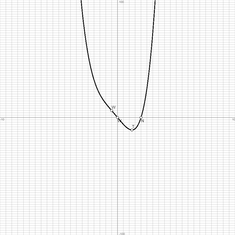 0 | 0 | -12 | 0 | 6.01 | Nullstelle N(0|0) = Schnittpunkt Sy(0|0) = Wendepunkt W(0|0) |