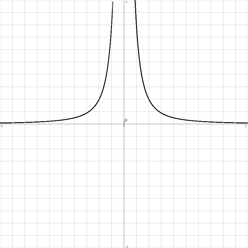 Funktion: f(x) = 1/x2, Df = R\{0}, Wf = (0; +∞), Standardhyperbel, Funktion achsensymmetrisch zur Senkrechten x = 0, x -> -∞: f(x) -> 0 = y als Grenzkurve, x -> +∞: f(x) -> 0 = y als Grenzkurve ->