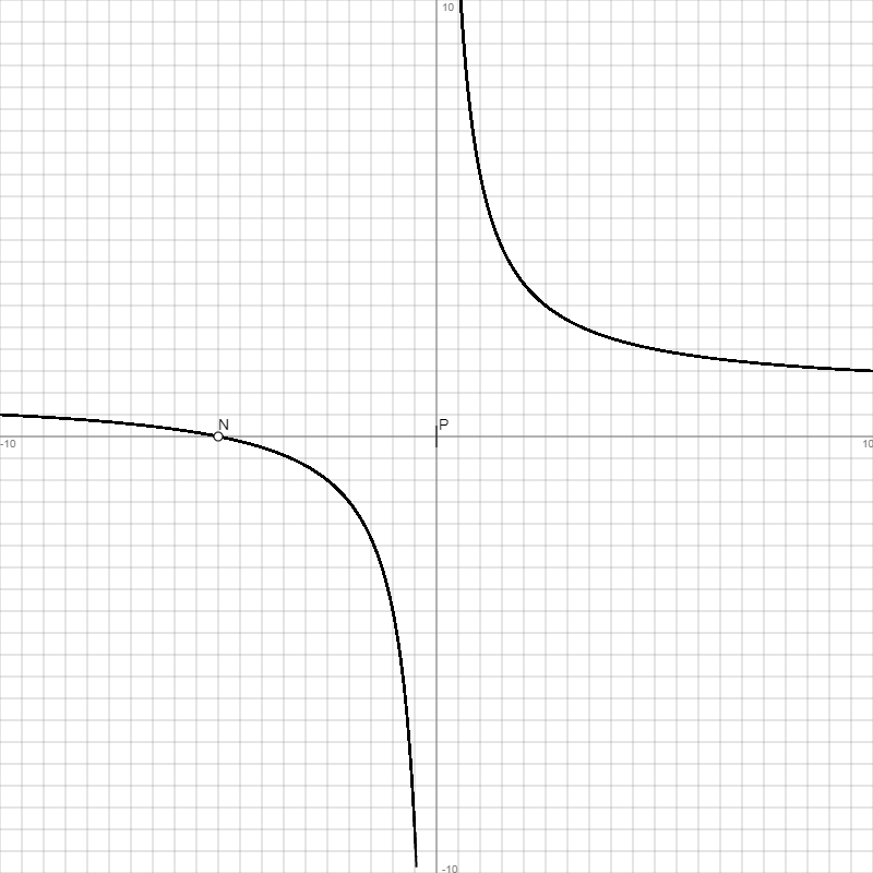 Funktion: f(x) = , Df = R\{0}, Wf = R\{1}, gebrochen rationale Funktion als gestreckte, verschobene Hyperbel, Funktion punktsymmetrisch zu Z(0|1), x -> -∞: f(x) -> 1 = y als Grenzkurve, x -> +∞: f(x) -> 1 = y als Grenzkurve ->