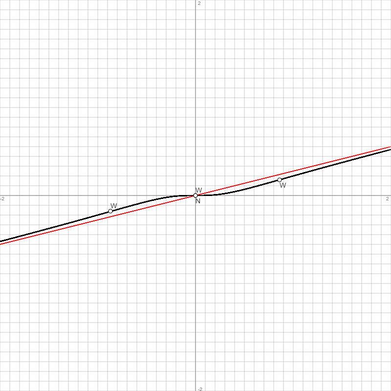 0 | 0 | 0 | 0 | 5.99 | Nullstelle N(0|0) = Schnittpunkt Sy(0|0) = Wendepunkt W(0|0) = Sattelpunkt WS(0|0) |