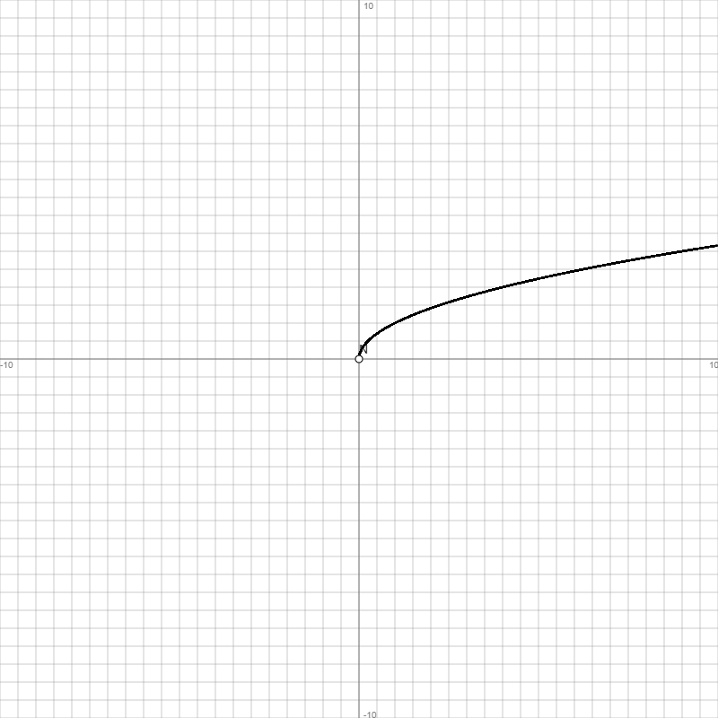 Funktion: f(x) = Math.radic;x, Df = [0; +∞), Wf = [0; +∞), Standardquadratwurzelfunktion, x -> +∞: f(x) -> +∞ ->