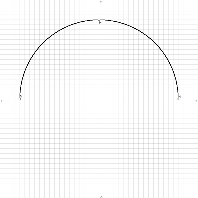 Funktion: f(x) = , Df = [-4; 4], Wf = [0; 4], Wurzelfunktion als Halbkreis, Funktion achsensymmetrisch zur Senkrechten x = 0 ->