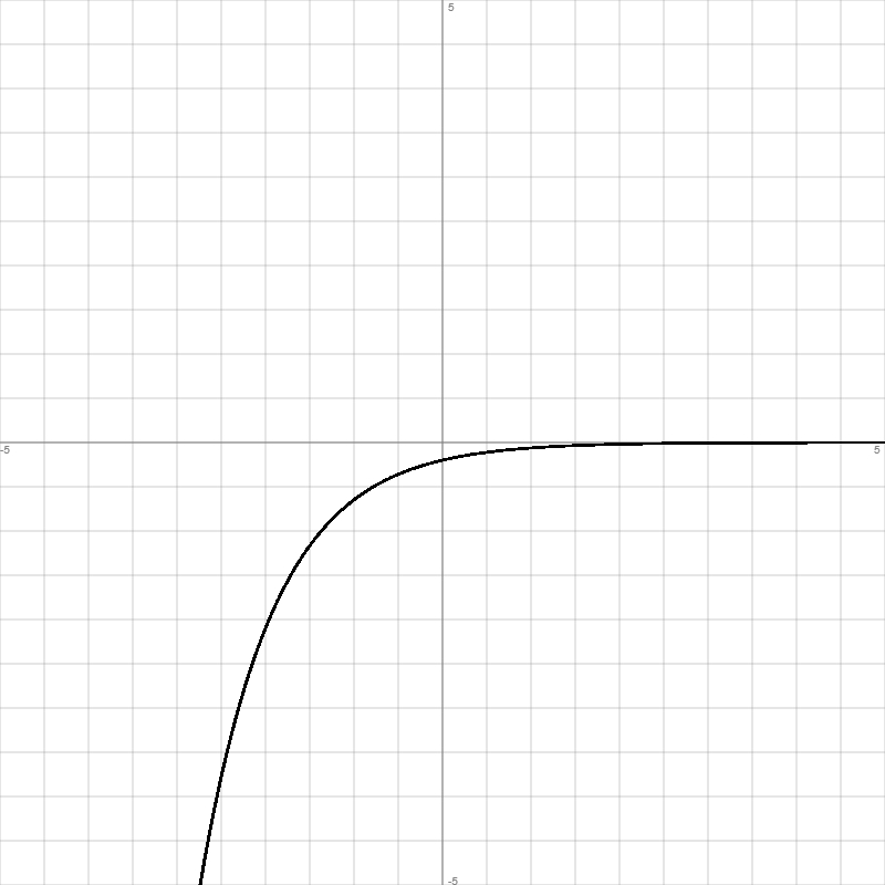 Funktion: f(x) = -1.8-2x/5, Df = R, Wf = (-∞; 0), reelle Funktion, x -> -∞: f(x) -> -∞, x -> +∞: f(x) -> 0 = y als Grenzkurve ->