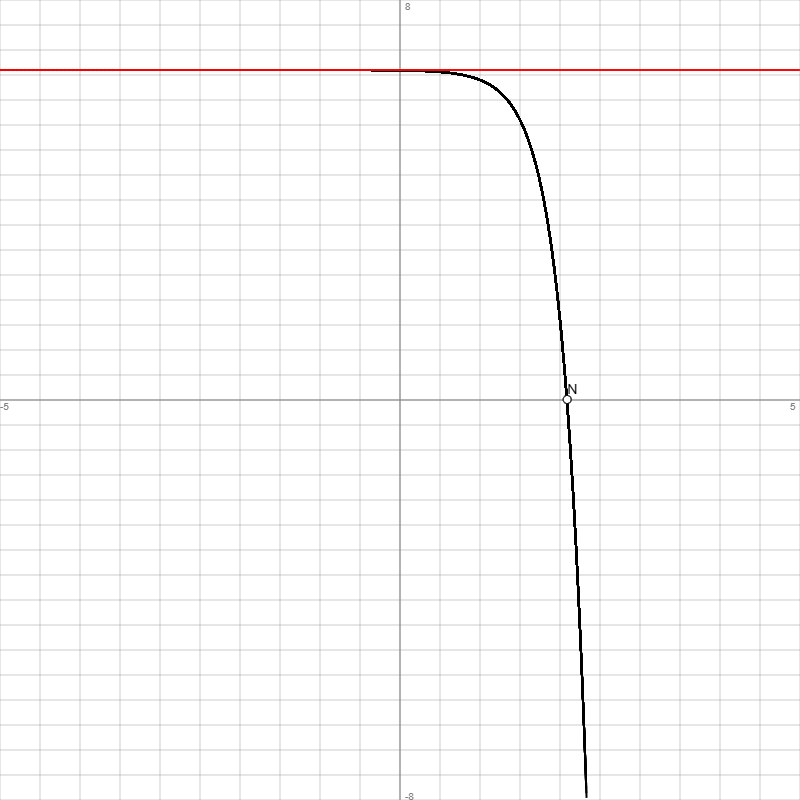 Funktion: f(x) = 6.6-0.2-2x+3, Df = R, Wf = (-∞; 6.6), reelle Funktion, x -> -∞: f(x) -> 6.6 = y als Grenzkurve, x -> +∞: f(x) -> -∞ ->