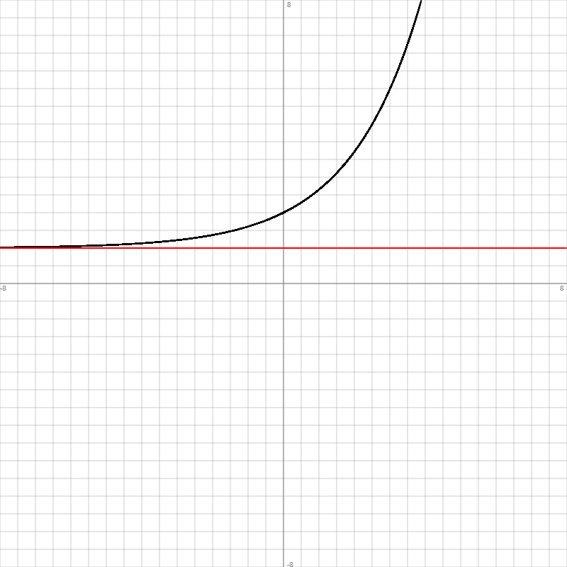Funktion: f(x) = 1+e0.5x, Df = R, Wf = (1; +∞), reelle Funktion, x -> -∞: f(x) -> 1 = y als Grenzkurve, x -> +∞: f(x) -> +∞ ->