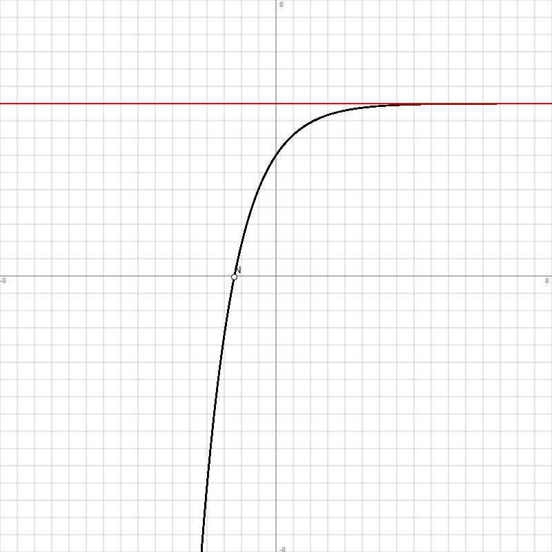 Funktion: f(x) = -1.5·e-x+5, Df = R, Wf = (-∞; 5), reelle Funktion, x -> -∞: f(x) -> -∞, x -> +∞: f(x) -> 5 = y als Grenzkurve ->