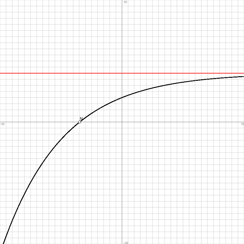 Funktion: f(x) = 4-2/ex/5, Df = R, Wf = (-∞; 4), reelle Funktion, x -> -∞: f(x) -> -∞, x -> +∞: f(x) -> 4 = y als Grenzkurve ->