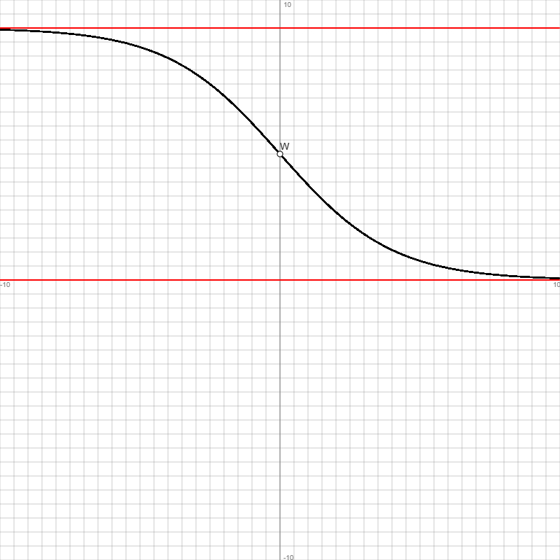 Funktion: f(x) = 9/(1+ex/2), Df = R, Wf = (0; 9), reelle Funktion, x -> -∞: f(x) -> 9 = y als Grenzkurve, x -> +∞: f(x) -> 0 = y als Grenzkurve ->