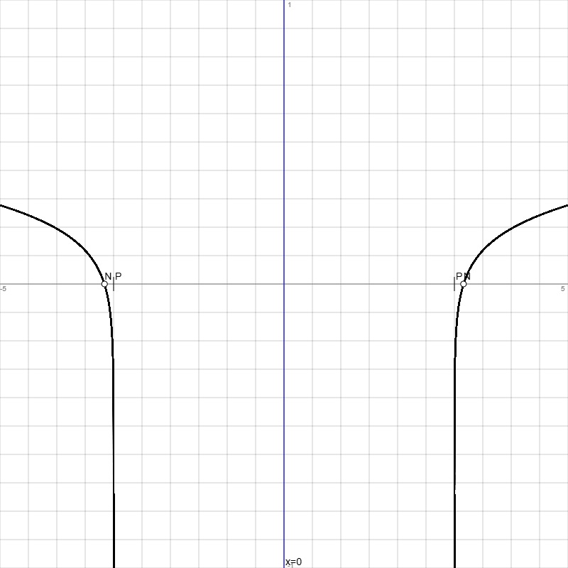 Funktion: f(x) = 0.1·ln(x2-9), Df = R\[-3; 3], Wf = R, reelle Funktion, Funktion achsensymmetrisch zur Senkrechten x = 0, x -> -∞: f(x) -> +∞, x -> +∞: f(x) -> +∞ ->