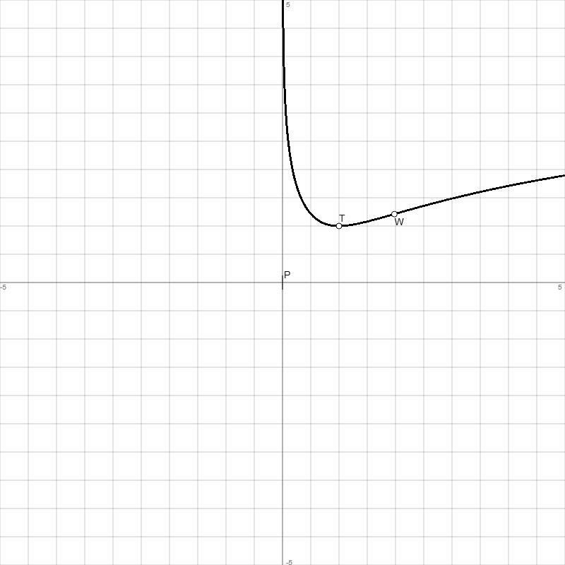 Funktion: f(x) = , Df = (0.27; +∞), Wf = R, reelle Funktion, x -> 0: f(x) -> +∞, x -> +∞: f(x) -> +∞ ->