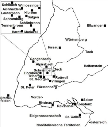 Noch ein Wort zur zeitlichen Ausdehnung dieses Lexikons! Das Mittelalter umfasst das Jahrtausend zwischen 500 und 1500, wobei die Zeitgrenzen nur als ungefähr, die Übergänge von der Antike und Vor- und Frühgeschichte bzw. hin zur Neuzeit als fließend zu verstehen sind. Ausblicke auf das 16. Jahrhundert, in die frühe Neuzeit (ca.1500-1800) - gerade auch hinsichtlich der Herrschaft Schramberg - ergänzen das Lexikon.